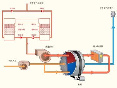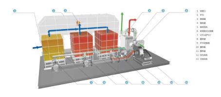 RTO(Regenerative Thermal Oxidizer,蓄熱室氧化器)原理是把有機(jī)廢氣加熱到760 ℃以上使廢氣中的VOC氧化分解成CO2和H2O。氧化產(chǎn)生的高溫氣體流經(jīng)特制的陶瓷蓄熱體,使陶瓷體升溫而“蓄熱”,此蓄熱用于預(yù)熱后續(xù)進(jìn)入的有機(jī)廢氣,從而節(jié)省廢氣升溫的燃料消耗。RTO技術(shù)適用于處理中低濃度(100-3500mg/m3)廢氣,分解效率為95%-99%。